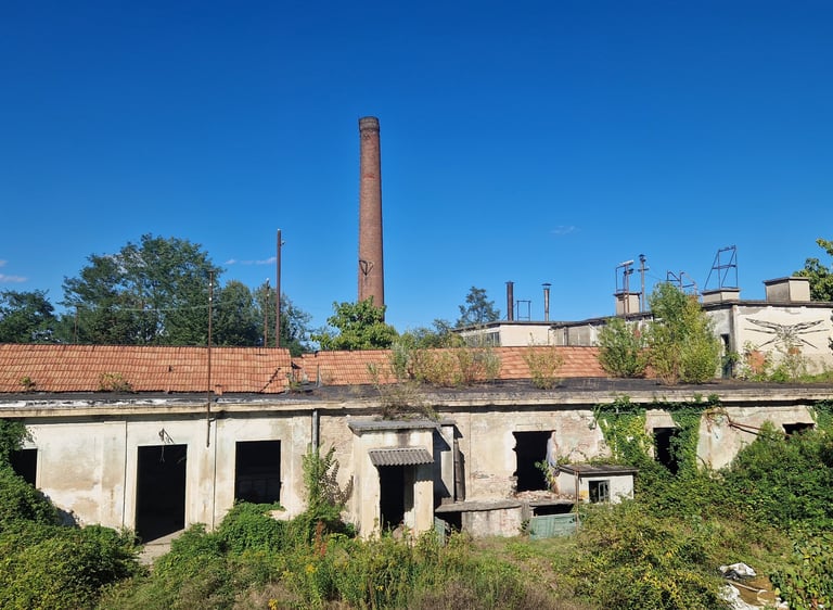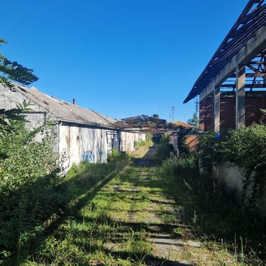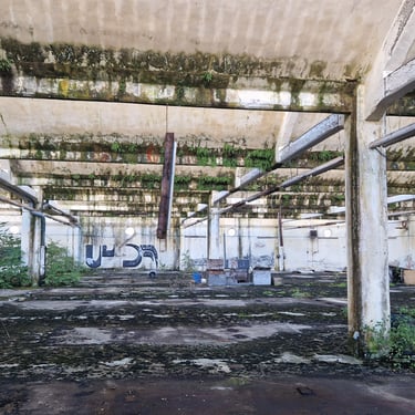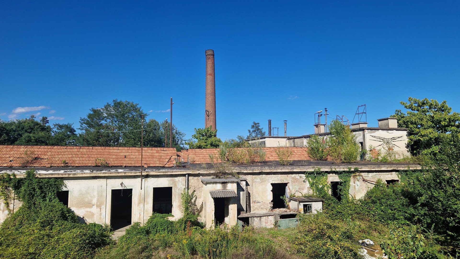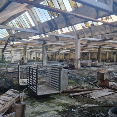 Durante l’esplorazione si percepisce chiaramente la scala dello stabilimento. I capannoni si susseguono uno dopo l’altro, collegati da corridoi, cortili e strutture secondarie. In alcuni punti i tetti sono crollati e la vegetazione cresce direttamente all’interno degli edifici, trasformando lentamente la fabbrica in una rovina industriale.