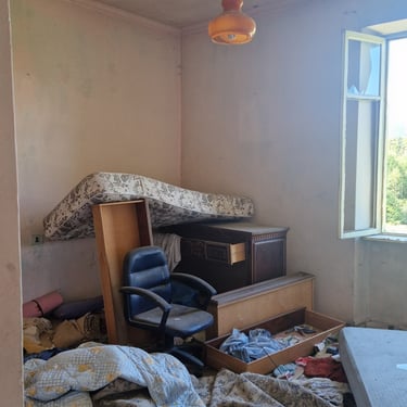 Letti rimasti al loro posto, armadi semiaperti, vestiti abbandonati da anni. In una stanza abbiamo trovato anche vecchi giocattoli per bambini, lasciati sul pavimento come se qualcuno dovesse tornare a prenderli.
