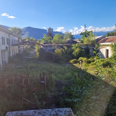 Oggi la polvere copre ogni cosa, l’intonaco cade dalle pareti e la natura inizia lentamente a entrare anche qui, dalle finestre rotte o dai tetti danneggiati.